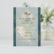 Small RSVP card matches the set. Celebrate your wedding in an artful and unique peacock theme with this beautiful wedding invitation and matching accessory set. Features stylish, rich and luxurious artwork of a peacock feather detail in colours of cobalt blue, teal and celadon light green. Background in dark aqua blue with an antique wash and swirly design. © 2010 www.CustomInvitesOnline.com