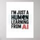“This Artificial Intelligence design features the phrase ‘I’m just a human learning from AI’ with circuit-inspired typography. A bold AI graphic for tech lovers, programmers, and innovators who embrace human and AI collaboration. Perfect on clothing, tech gear, and accessories.”
