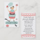 Super cute, chic artisan cake diva or cupcake bakery business cards for modern, hip bakers and pastry chefs! Woman with decorative chef's hat wearing a fondant-covered layer or wedding cake and high heeled boots, holding a cupcake in each hand, in a nifty coral pink and minty blue colour scheme.