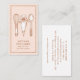 Artisan cupcake bakery branding featuring delicate vintage style baking utensil illustrations including a whisk, piping bag, and spoon arranged above a peach blush background framed with a dotted border. Fine line culinary artwork creates a warm handcrafted bakery aesthetic that suits cupcake bakers, cottage bakeries, pastry chefs, and small dessert businesses looking for charming and memorable branding. Elegant serif typography paired with a handwritten signature line gives the design a personal boutique feel while keeping the layout clean and professional for sharing bakery contact information with customers at farmers markets, pop up bakeries, wedding tastings, dessert tables, and local food events.