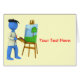 Cartoon artist with easel, add your own text, fonts, and background colour!