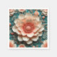 Detailed 3D ornamental floral pattern featuring a prominent orange flower surrounded by green foliage and intricate blossoms, creating a striking contrast with the bold teal background emphasising elegance and creativity.