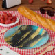 Artistic Abstract Art in Turquoise, Gold and Black Paper Plate