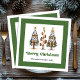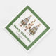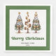 Modern Christmas dinner napkins featuring three minimalist watercolor Christmas trees in earthy green and gold with playful leopard pattern accents and hand-drawn lettering. A stylish choice for festive tables, these napkins are personalised with your custom name, adding a unique and elegant touch to your holiday dinner or Christmas party décor. 🎄✨