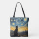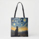 Artistic Black Cat & Celestial Town Reusable Tote Bag