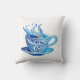 Artistic Blue Coffee Cup with Swirling Patterns Cushion