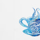 Artistic Blue Coffee Cup with Swirling Patterns is a graphic design created in a seeamless pattern.