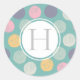 artistic brush stroke pastel polka dot monogram classic round sticker