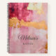 Spiral notebook wwith gold and pink artistic brush strokes make up this modern looking abstract background design.