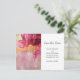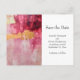 Save the date postcard with gold and pink artistic brush strokes make up this modern looking abstract background design.