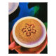 Vibrant and creative depiction of a cappuccino. The floral foam design complements the bright, colourful background, evoking warmth and artistic flair.