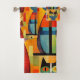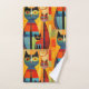 A colourful bathroom towel set featuring a painting of cute cats. A fun and eye-catching addition to your bathroom.