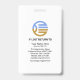 An artistic curvature border design sit at the top of the badge with colourful shades. It houses a template to upload photos at a size of 1,000 x 1,000 pix. Below this, are your prestigious name and job title followed by an optional global logo that you can use alongside its email contact.