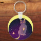 Artistic Cute Moon Cat Silhouette Stars Night Sky Key Ring