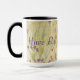 Modern and stylish coffee mug with a watercolor floral design. Text can be personalised, or text is removable.