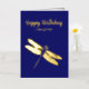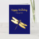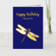 An original dragonfly painting printed in gold on this birthday card is so very beautiful against this colourful background. It is ready for your personal touches.