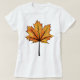 Fun autumn leaf shirt with digital art featuring a decorative botanical illustration of an autumn leaf in warm vibrant orange and yellow colours.