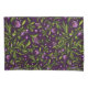 Intricate floral pattern with green leaves, purple flowers, and berries on a dark purple background. Artistic and vibrant, conveying a whimsical tone.