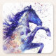 Artistic blue and white coaster featuring watercolor splatter horse painting. A stylish way to protect your desk, coffee table, night stand, or anywhere else you enjoy a drink! These eye catching coasters are a unique gift for anyone. A perfect gift for wedding or housewarming.