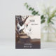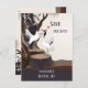 Save the Date postcard featuring a drawing of Japanese cranes at the edge of a forest. Japanese cranes are a symbol of longevity, happiness and fidelity and therefore perfect for a wedding!