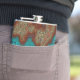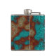 An artistic rendition of a mineral map design. Colours of burnt orange and touquoise in variegated shades.This classy hip flask would be great gift, for a mineralogist, anyone associated with the mining industry.