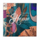 Artistic Orange Pink Navy Botanical Leaves Welcome Tile