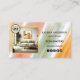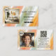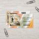 Business card featuring your own photos on front and back, framed by an artistic paint swatch design with gold. A template for your logo, custom QR code as well as social media icons are added. You can either customise or delete these. Great for an interior designer or home staging professional and customisable for other purposes.