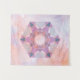 Artistic rendering of Metatron's Cube. The colour palette is mauve, orange, beige, ecru, light blue, purple. The customise option is available to change the background colour, which you cannot see here as it is behind the design, but it will add a different tint to the artwork for a different look. The artwork is orientated for a vertical tapestry. You can use the customise option to rotate the artwork if a horizontal orientation is desired. Original Art © 2018 Nancy Lalonde