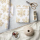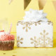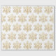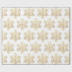 Christmas gift wrapping paper feature decorative faux gold snowflakes.