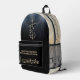 Crafted for the artist in motion, this backpack is the ultimate tribute to the creative spirit. The front features a striking black and tan design with a graphic that elegantly unites a treble clef with a soaring violin under a spotlight, setting the stage for your next performance. Adorned with the customisable phrase "A MASTERPIECE IS BORN WITH STRINGS AND A BOW" this bag speaks to the soul of every musician. Its unique side panel is both stylish and practical, showcasing a violin silhouette alongside a musical staff with notes and scales. This is a must-have for anyone who wants their passion for music to be seen and heard.