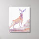 This watercolor painting features a red deer stag standing atop a ridge. The beautiful red, blue, and purple colours are striking and harmonious. For animal lovers. Perfect for a forest retreat or a nature lover's home.