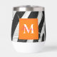 Introducing the "Artistic Zebra Stripes Orange & Hot Pink Monogram Thermal Wine Tumbler," a stylish and contemporary accessory designed to keep your beverages at the perfect temperature while showcasing your unique style. This tumbler features an eye-catching design of textured zebra stripes, combining bold black and white patterns with an artistic touch. The modern aesthetic is accentuated by a customisable monogram and name, displayed in a vivid square of vibrant orange and hot pink colours, adding a striking and personal flair.