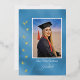 The foil ivy on a distinctive multi-blue background really sets this high school graduation card apart. Culturally, ivy is often associated with education. The "Graduate" text on the front is actually a graphic image but is editable with the Design Tool. The photo and all text are easily changed with the template. Selecting “Personalize this design” offers you several edit options to easily change the text (wording, plus type font, color, size, position) and to edit the design elements, if you desire. You may also want to scroll down to the section “Transfer design to a product” for a few suggestions about other items this design can be used on.