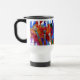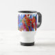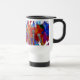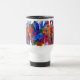 A super mug with lid, a vivid color background with artist's brushes; prevents any spills and keeps your coffee warm.