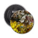 Very cute and compact little bottle opener. Also very fond of the magnet, both for sticking to the fridge and holding on to the bottle cap when trying to open it. Good quality print. As pictured.
