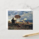 A fine art postcard with the painting, Artists Sketching in the White Mountains (1868) by the America artist Winslow Homer (1836-1910). Painters under umbrellas drawing on easels high up in the White Mountains.