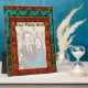 Elegant stand-alone photo plaque featuring an original design by Leslie Sigal Javorek that's a delightful tromp l'oeil of a cherry wood window frame richly carved w/ woodland animals that surrounds your uploaded photograph and finished w/ a gracefully draped emerald green swag and a William Morris influenced wallpaper. 2 Custom Text Fields. NOT a picture frame, your photo will be permanently embedded, so be sure you like how the fit & position before ordering.
