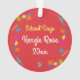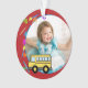 School bus and crayons and all of that fun stuff, elementary school photo ornament. Festive holiday red and other primary colours decorate this Christmas keepsake ornament that will be cherished always by kids, parents and grandparents, year after year.