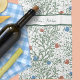 Arts and Crafts botanical pattern in sage, red and blue inspired by William Morris and using many elements he used such as poppies. Your name in green at the top.