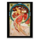 1898 Art Nouveau lithograph poster by Czech artist, Alphonse Mucha (1860-1939). Beautiful woman in a red dress, flowers in her long, flowing, bright red hair, her back arched, looking over bared shoulders, standing on her toes.