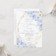 ArtsApp bridal shower invitation -- dusty blue watercolor roses, dusty blue eucalyptus foliage and white daisies sprinkled with gold dust. Accented with a removable faux gold gem facets frame. All elements are editable. Copyright © 2023 ArtsApp™. All rights reserved.