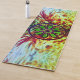 This artsy, abstract painting shades of red, green and blue splattered through out the mat with a decorative green petal mandala as the centerpiece. Artsy cool vibe with vibrant energy to get you going with your yoga practice.