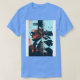 I give wanted to give this a 4 instead of a 5 because these Basic DARK T0shirts run unexpectedly SLIM or Narrow. Which is great if you do not have a potbelly, but I have a paunch. It isn't the shirt's fault that I've got a beer belly. The design and shirt itself is a quality cotton shirt. The color is more of a deep purple, but still a very pretty color. The Basic DARK T-shirts run a bit SLIMMER than the Basic Ts. The neck is a fraction narrower (or seems to be narrower) also. I'm a paunchy middle-aged woman and my neck is 12 inches (31cm) thick and the neckline fell about the same as in the photo of the man, and I had the desire to tug it a bit. So if you're a thick necked man or like loose shirts, be aware these are slimmer shirts. Once I get rid of my lockdown paunch it'll look great. The shirt washed well in cold water with no apparent bleeding. We don't have a dryer, so it hung dry. Did not shrink. Love the colors and the design. The design looks smaller on my shirt than it does on the model on-line. But still, it looks good on the shirt. The printing looks as it does on the model, just the size seems fractionally smaller. Washed garment in cold water, hung dry and design appeared unaffected.
