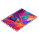 This notebook has an artsy car scene on it.