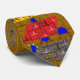 Artsy Cardiologist Tie With QRS Segments. Artist designed tie, created in layers, this artsy and abstract tie will stand out in a crowd. Stratigically placed black and white QRS segments throughout the tie. Red, brown, gold and blue on a dark gold background.