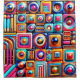 This shower curtain has an artsy design on it.