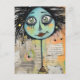 Digital scrapbooking and art journalling inspiration. Bits and pieces of paper glued onto a blue distressed background. Top layer: a whimsical girl with wild black hair and big eyes.