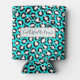 Artsy Modern Cyan Blue Leopard Animal Print Can Cooler