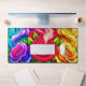 LOVE this desk mat! It's large! It fits across my desk. No need for a small mouse pad now! Color and print are excellent. Quality seems to be excellent too. Delivery was about 3 days sooner than expected. I think this is one of my favorite Zazzle products! Excellent. The color is vibrant and true to what I expected.
