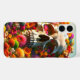 This phone case has an artsy skull on it.
